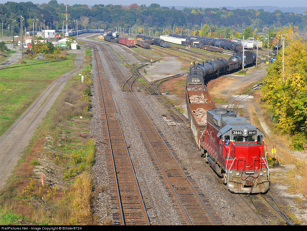 | NECR (nee New England Central) 3840 works the Stuart St Yard in Hamilton Ontario on a hot, but beautiful Thanksgiving Sunday. |