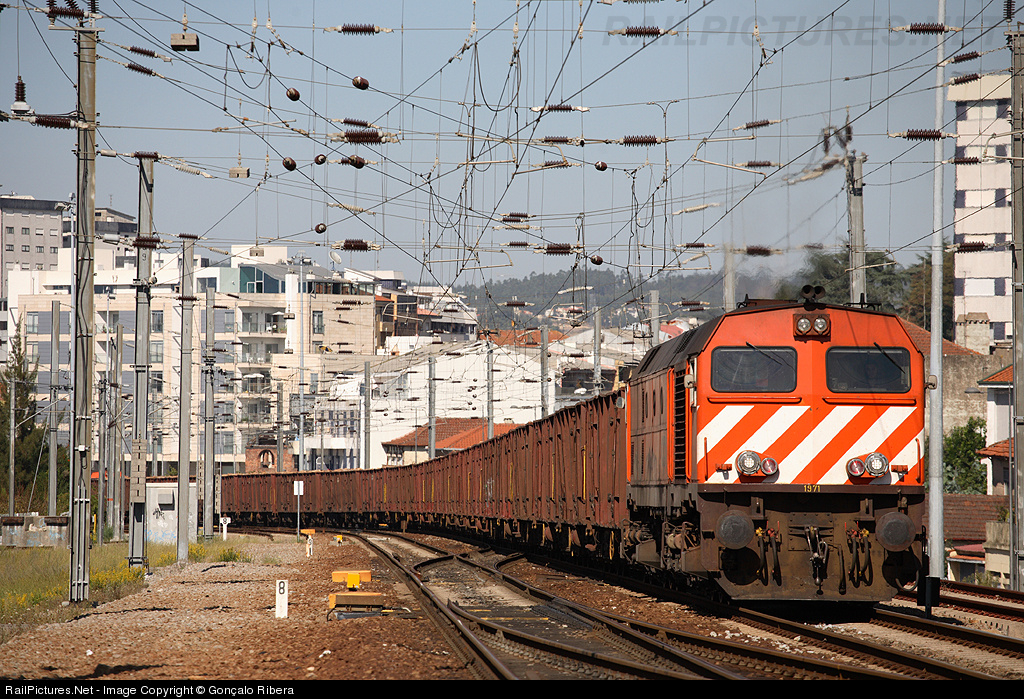 A full woods train Valença - Gaia. I wasn´t expecting the train to be as long and to bring a surprise: another Bombardier locomotive - 1973 - at the rear of the train, working, making it a top and tail consist. You can see an orange locomotive on the left at the end of the consist.