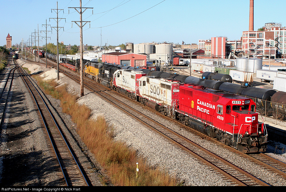 On a wonderful evening, G45 (Bensenville to Clearing) cruises down the Belt, with a very nice lineup, consisting of a CP GP40, a pair of SOO GP38-2's, an NS GP60, an NS (Ex-HLCX/UP) and an NS Dash 9. Bonus points if you can spot the CN manifest and BN SD40-2.