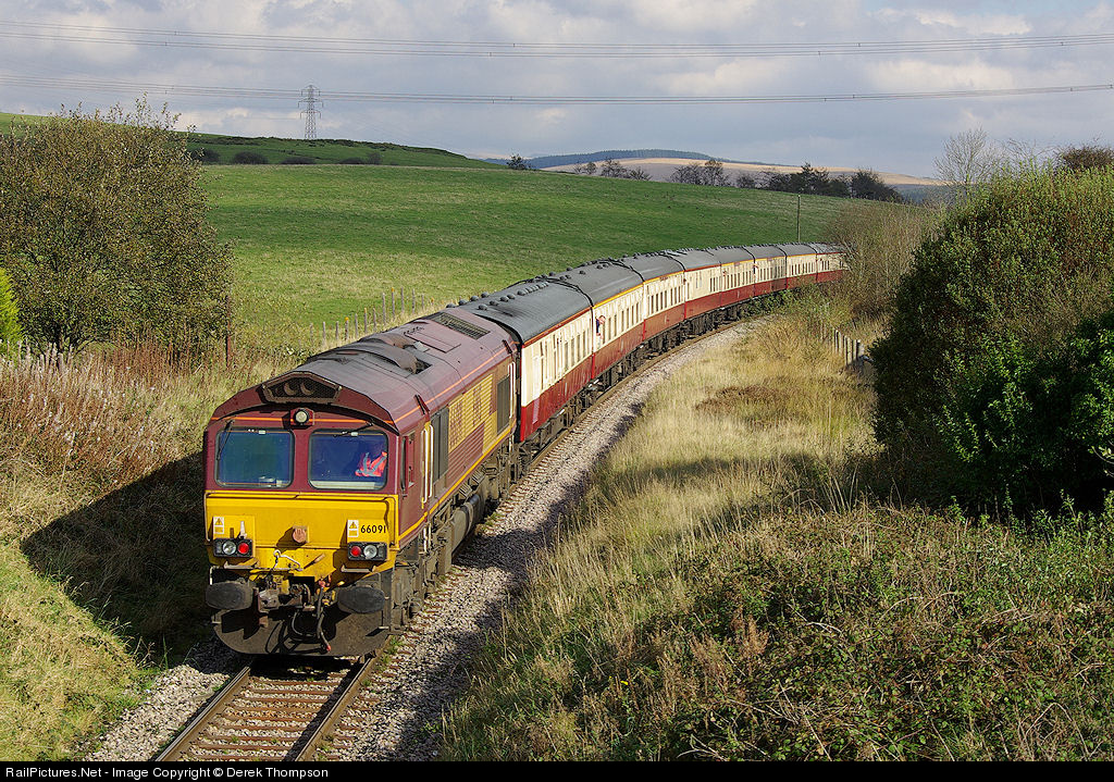 | UK Railtours Valley of the Witch tour visited a number of locations is South Wales normally only seeing freight trains. 66091 departs Onllwyn with the 13:42 Onllwyn - London Paddington. |