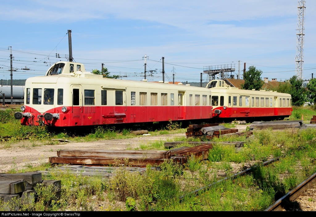 Out of service the X 4039 and behind X 3886 belonged to the ABFC, Autorail Bourgogne Franche Comté section. They are nicknamed "Picasso" and were produced 1951 till 1962 by ANF, De Dietrich and Renault. 1988 they went out of service. Two units, Picasso X3814 and X3835, running still at Train Touristique du pays de Puisaye-Forterre along some other units around the country. See also photo 378220 of Jean-Marc Frybourg.