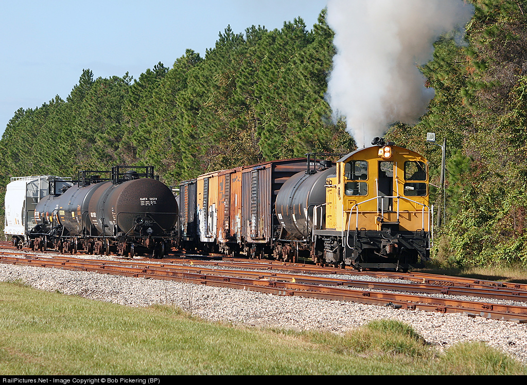 | After about 3 years of trying to be here when this unit was working the yard I got lucky on this day. This yard over the years had been worked by NS and CSX but now Georgia Pacific relies on a leased Railserve locomotive to get the job done. Smoking it up as they shove cars back towards the massive mill. Friendly crew. |