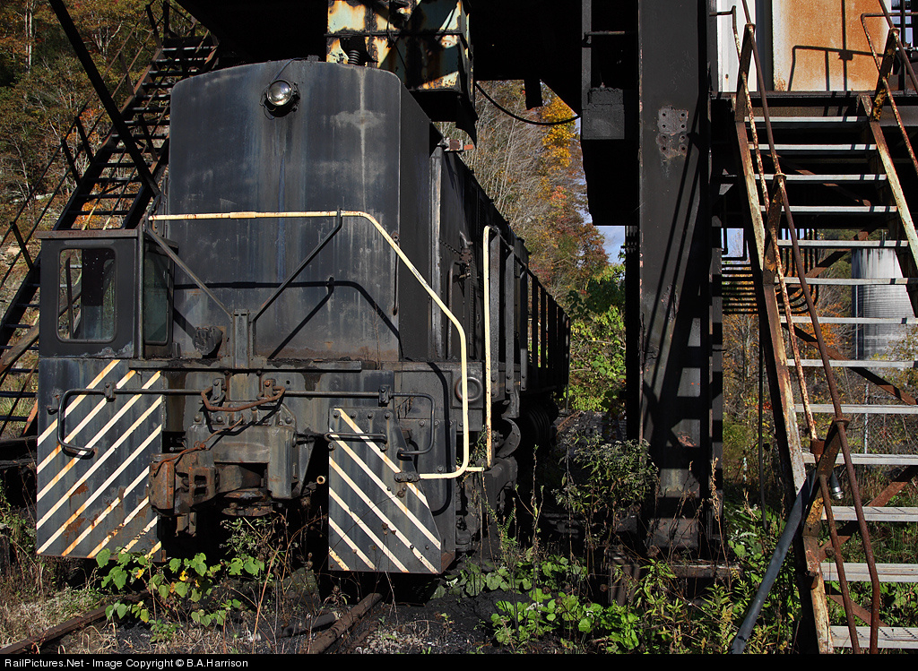 An old Alco with the cab removed and a "phonebooth" added to the front for an operator, deep within the coalfields of Virginia.