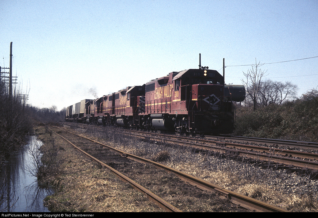 Farewell Lehigh Valley: The month stamped on this slide is May 1976, but the consist indicates the picture was taken prior to Conrail. On April 1st, GP38AC 310 became the property of Conrail, but GP38-2 317 and it's two brethren joined the roster of the Delaware and Hudson. Although they followed a different, both 310 and 317 are still around today, #310 as NS GP38-2 rebuild 5655 and 317 as D&H GP38-2 7303. This was my last photograph of my favorite railroad on the Sunday prior to C-day. I was only in 1st grade at the time and had to go to school in the last three days of the Lehigh Valley!