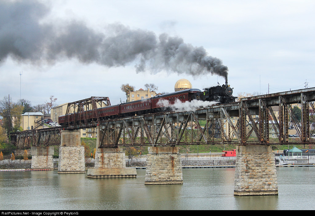 | Steam Over Knoxville! Ex-Southern Railway #154 pulls the Alcoa excursion for the Lexington Group in Transportation History over the Tennessee River, and out of downtown Knoxville. #154 pulled the train along the Norfolk Southern Alcoa Branch to Alcoa, Tennessee, where fellow Southern Railway consolidation #630 was put in place of #154 for the return trip. |
