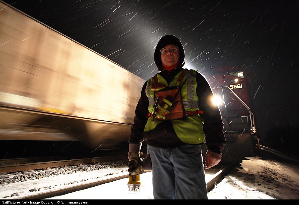 Conductor Cook- Far away from punching tickets on Penn Central to Metro North commuter trains into Grand Central, Conductor Cook has been there and done that. 2 years before retirement, he braves wind, snow and cold- rolling by another hotshot in the middle of the night, from the comforts of the freight pool. Cry-babies need not apply.