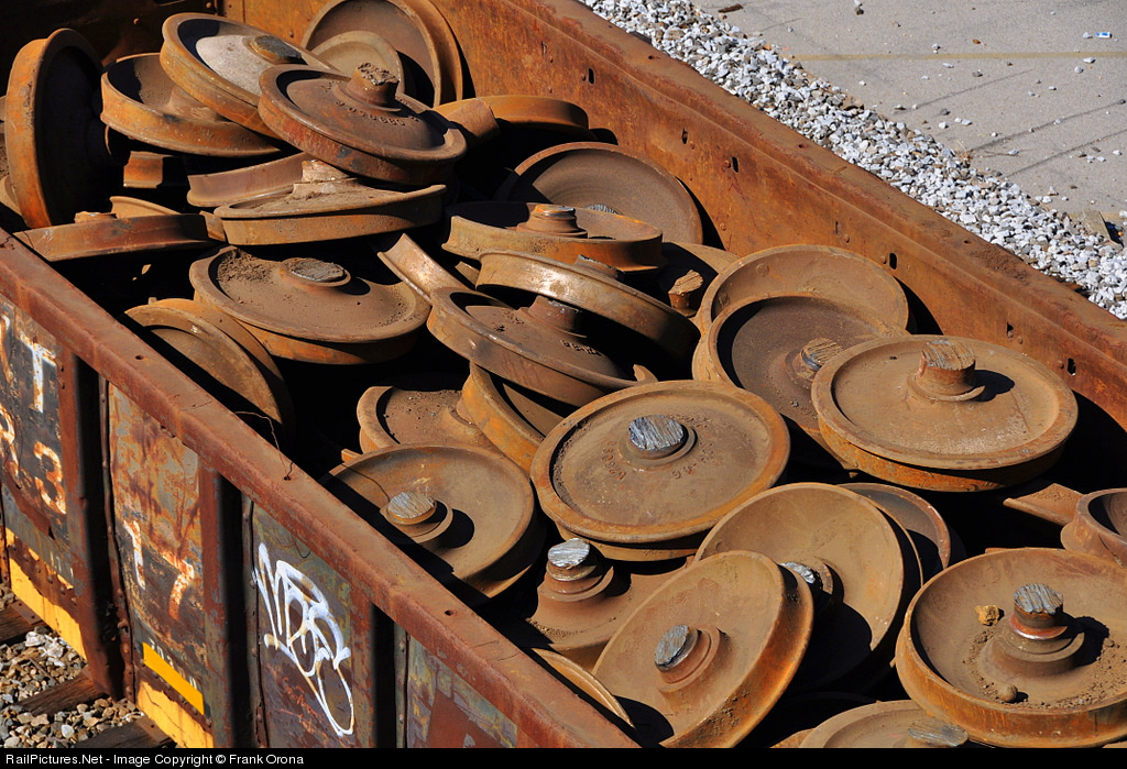 | Steel Circle of Life With their days of rolling along the Nation’s railroad behind them, scrap wheels of which some were cast in Calera, Alabama now find themselves at the end of CSX Y117 heading to an electric arc furnace where they will be melted down and recycled into something new. |