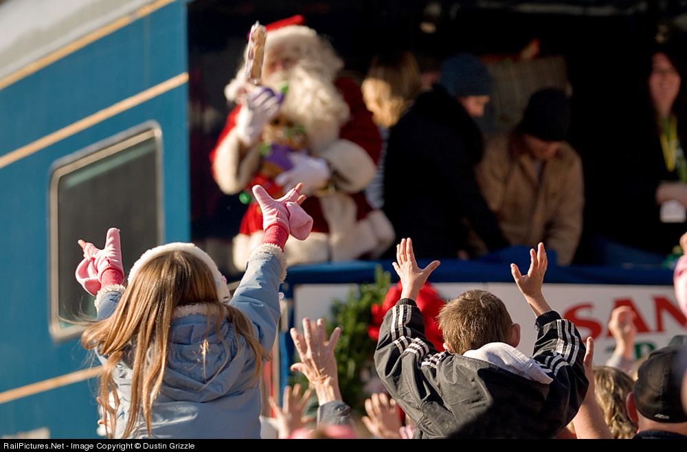 Santa makes the day of thousands of eager children along the route of the Santa Train. He is seen here throwing toys and snacks to the children of Dante, VA.
