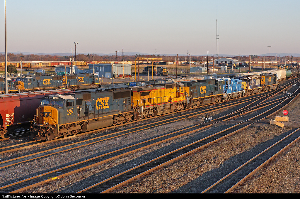 6 units, 6 models, 4 builders (if you count CSX as a builder on the SD40-3). A nice set of power off the inbound Q382 has pulled off its train and is heading for the service area. Besides the 4550 trail "leader", the consist includes ex UP C40-8 CREX 9057, CSX 83, MPI GP20D CEFX 2010, CSX 8116, and CSX 4016.