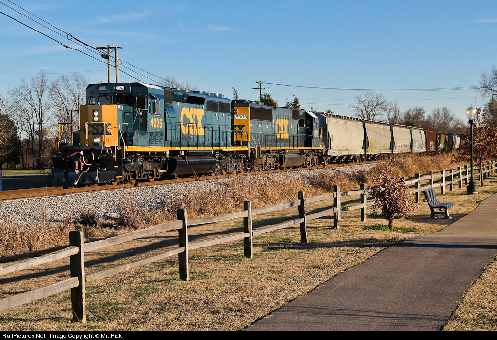 Her 15 minutes of fame over, CSX 4025 no longer pulls the Santa train and has returned to her more mundane duties, such as pulling these hoppers through middle Tennessee. She still wears her new paint job proudly, though the holiday wreaths and admiring children are long gone.