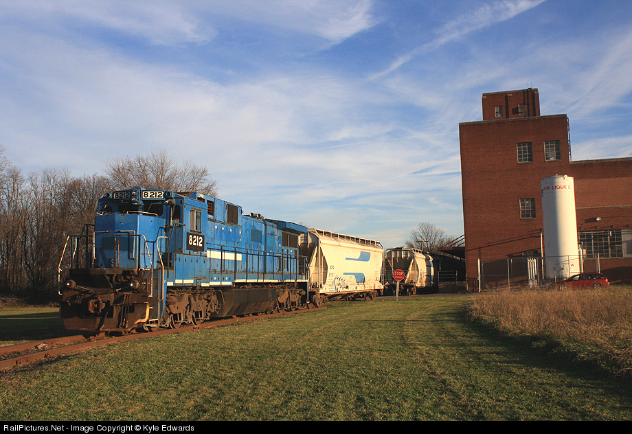 Pennsylvania Northeastern C39-8 #8212 (former NS #8211, built as Conrail #6021) is in Hatboro, PA with a cut of centerflow hoppers at a local industry.