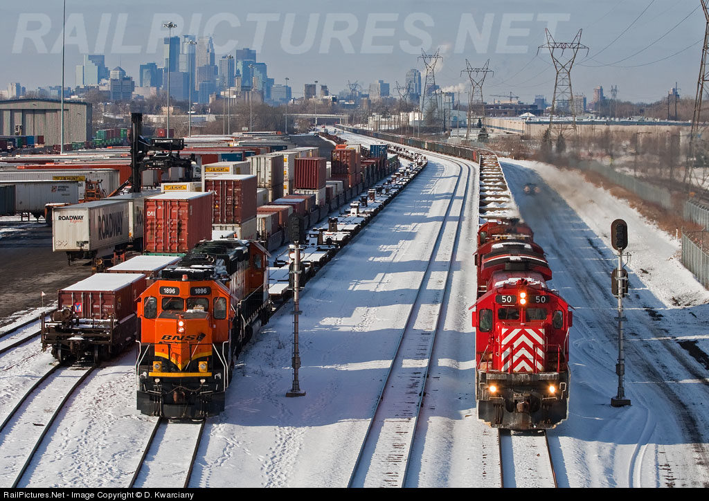 MNNR 50 leads another sand train through Midway passing the BNSF intermodal facility.