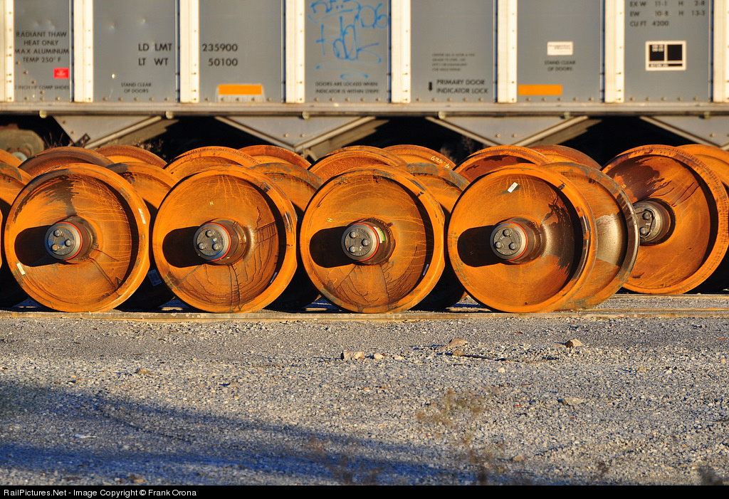 Full Circle Completed wheel sets sit on the ground and await installation on coal hoppers in the back. The ground they are sitting on used to be home to the famous Abex Corporation wheel casting foundry in Calera, AL which later became ABC Rail in 1987. Casting freight wheels in sizes of 28”, 33”, 36” and 38”, this railroad wheel manufacture would cast some of the best wheels in the industry but would ultimately succumb to the harsh effects of the economy and cast it last wheels in early 2000. The former plant has since become a repair facility for freight cars.