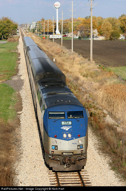 RailPictures.Net Photo: AMTK 154 Amtrak GE P42DC at Gardner, Illinois by Nick Hart