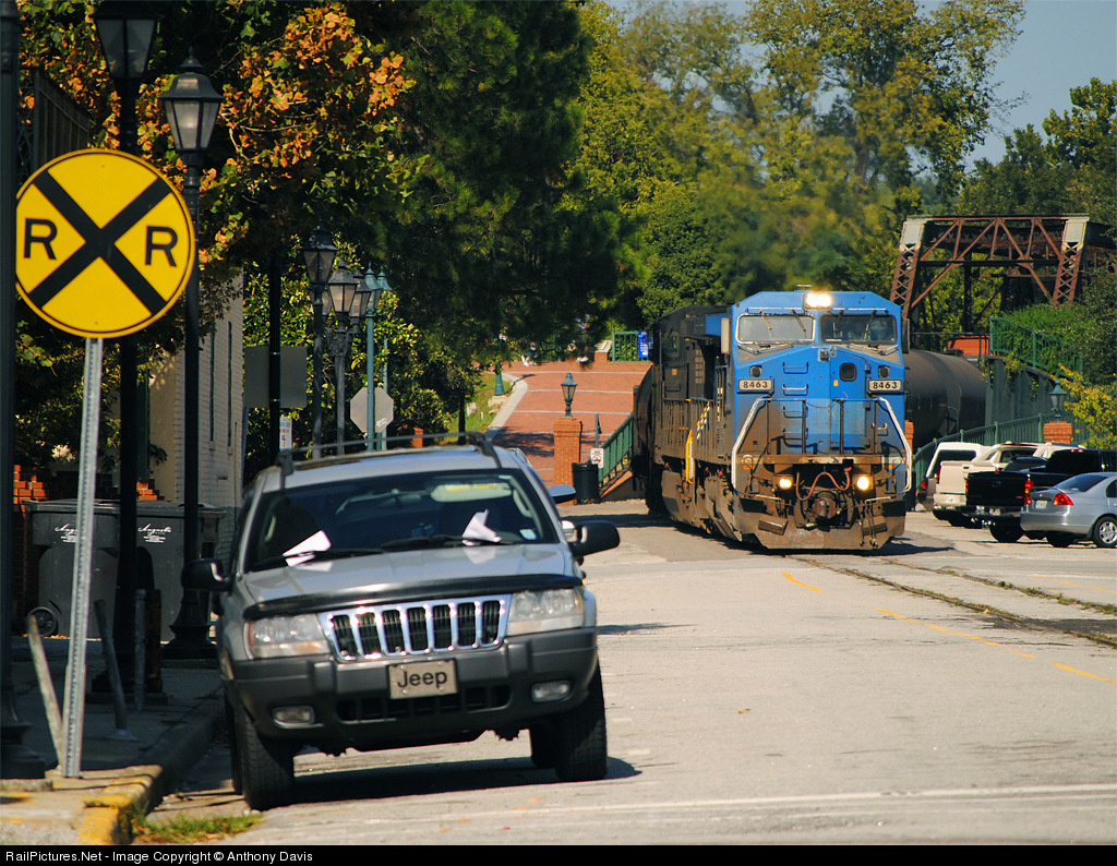 | Big Blue Comin' Through! NS 191 had a rare Ex. LMS unit on the point today as it rolls down the middle of 6th Street on its way towards Norfolk Southern's Augusta Yard about a mile from here. These days anything blue leading a train is worth catching as NS is wasting no time sending these to the paint booth and out with a fresh coat of Black & White! |
