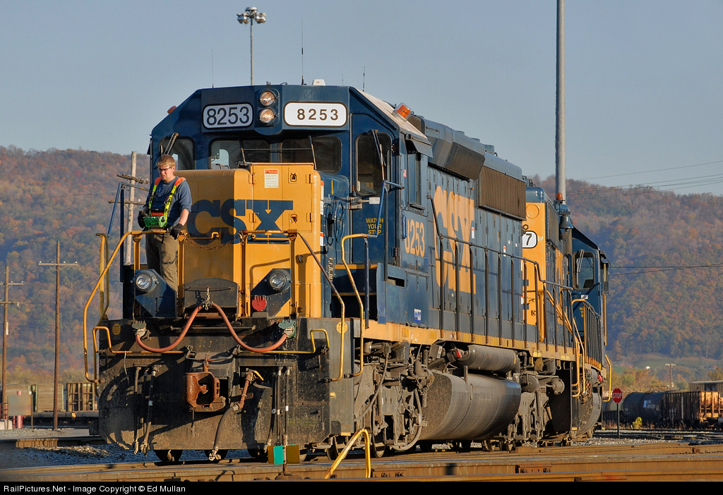 This telephoto view of 8253 makes her look as big as she really is! Behind 8253 is 6497, plenty of power for the Cumberland Yard, much of which as you can see is on a grade. Look at all the antennas on her roof, and the neat equipment box built into the engines nose. And last but not least, the mismatched number boards!