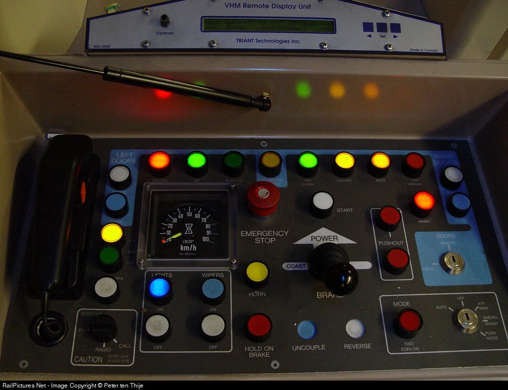 | This train is remote-controlled, but can be controlled from onboard. The service agent opened the controls, and I made a fwe pics! |