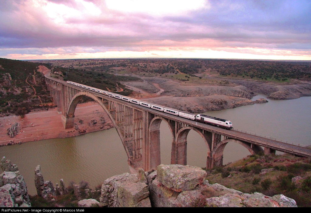 | Coming to this point, so far from our city and with so few trains, it is something very difficult to explain even when you talk with other railfans. But when you come in late December with an infamous weather and with the light dying from five in the afternoon is because you must be missing a screw. And if you enjoy with the experience and return home with a smile it is you are crazy. Very, very crazy. The train is the Talgo Madrid-Galicia. |