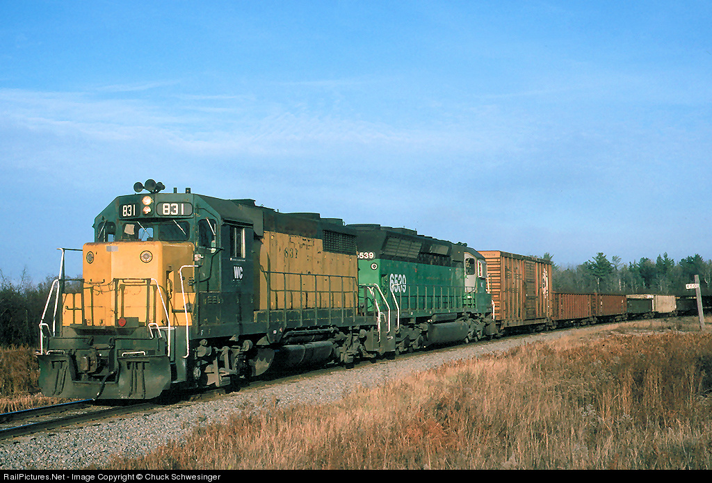 RailPictures.Net Photo: WC 831 Wisconsin Central EMD GP35 at Trout Lake, Michigan by Chuck Schwesinger
