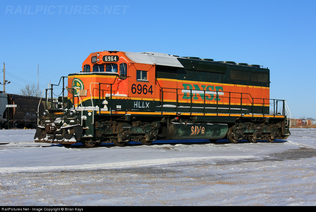 Spray paint....cardboard....anything to make sure that this locomotive is "sold and do not remove parts." The former BNSF 6964 is now owned by one of the many branches of the Helm Financial Leasing Corporation (HLLX), and calls Thief River Falls, MN as its temporary home before being claimed. On 1/3/2012, this locomotive was the trailing unit on the Minnesota Northern Warroad Local headed back via Erskine on the CP to Crookston. As of 1/12/2012, it has been at Holt, MN under the ownership of Independent Locomotive Service.