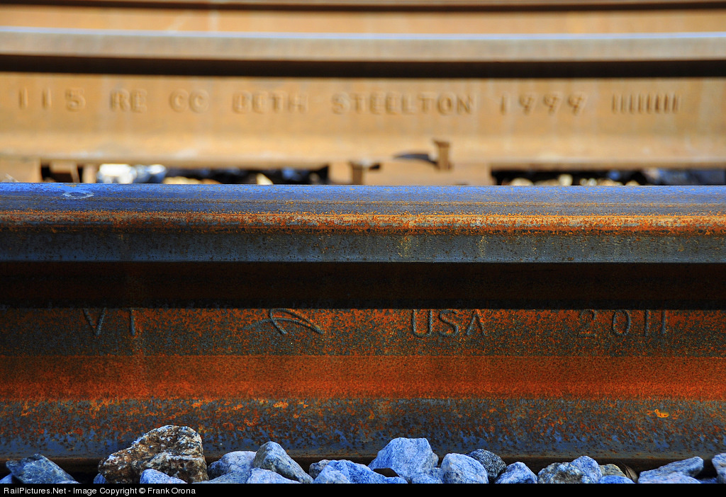 Still the same Rolled in July of 2011 and dropped off by A012 a few weeks earlier, this string of new 115 lb rail from ArcelorMittal Steel will soon replace its brethren of Bethlehem Steel descent. While the names on the side of the rail may change, the quality inside them remains the same since both rails were rolled at the famous Bethlehem Steelton, Pennsylvania rail mill and are separated by only twelve years in age.