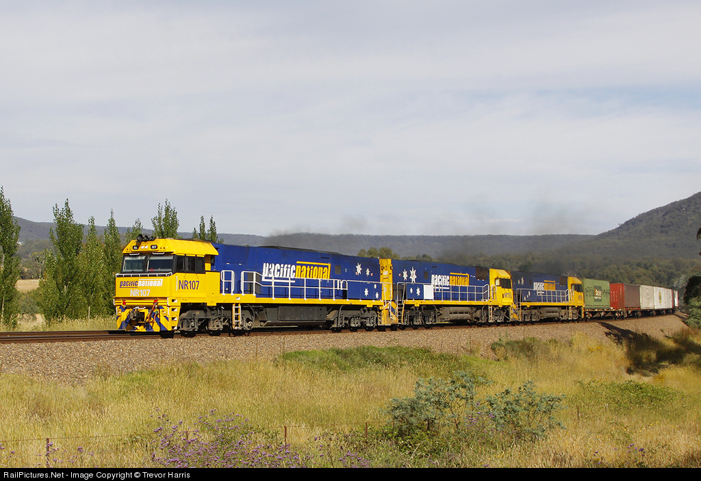 | NR107, NR115, NR78, in the stars livery lead an early morning 3MB4 through the curve at Towrang. |
