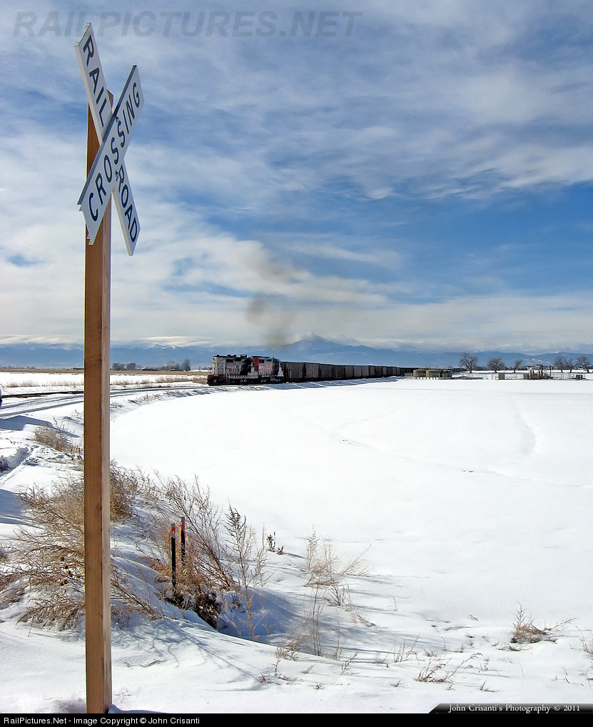 Lets Try This Again... Working together, an SD9 and SD35 push 115 empty coal hoppers on the Welty Branch with the Rocky Mountains in the background and Longs Peak as well. What their intentions was that they needed to push these cars up the hill in the background to make room for more stored cars brought in by the UP. Experiencing air line issues on the cars made it extremely difficult to accomplish their task. After making trips back and forth a few times, the finally got half of their train across the hill. Another added issue to this task was that it created major wheel slip on the two locomotives. One could see these units do 10 - 15 MPH and in a matter of seconds slow down as they try to get the cut of cars. After their efforts have failed, they had to cut some country road crossings. Afterward, the 4327 uncoupled from the 2959 and they both followed each other on the same track right behind one another back into Johnstown, where they would go their separate ways for the rest of the day. A total of 4,250HP was used that day, but it just wasn't for enough for the train. Overhearing the engineer on OMLX 4327, she said if they had another unit, they would have made it. All in all, they tried their best and they can try again another day. Better luck next time fellas! For more information at what happened as well, Click here to view the video