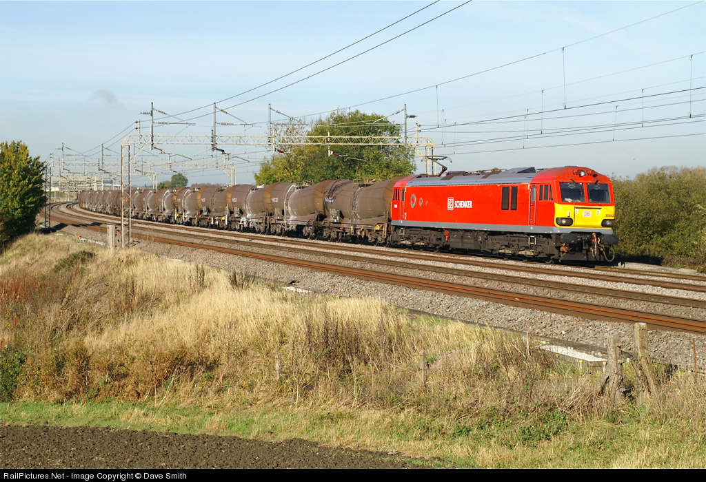 Sporting its new DB Schenker livery 92042 passes Chelmscote with 6m76 Warrington Arpley Yard to Wembley Yard empty china clay tanks .