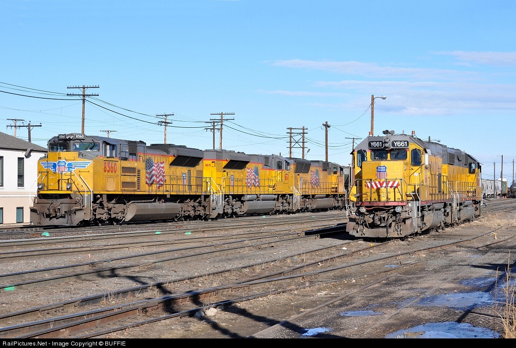 UP 8560 (SD70Ace) leads a team of heavies and freight into the 36th Street yard as Y661 (GP15-1) and mate wait to be called to sort the cars.