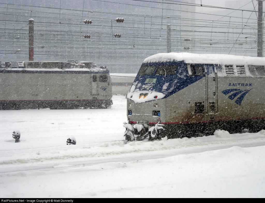 | The winter of 2009/2010 was hard on Washington DC with two major Blizzards. P42 20 is coupled back-to-back with another P42 going throughout Washington Terminal to keep tracks clear as the relentless snow falls hard. In a matter of a few hours, those dwarf signals will be buried and all yard moves will come to a brief halt for safety reasons due to white out conditions. |