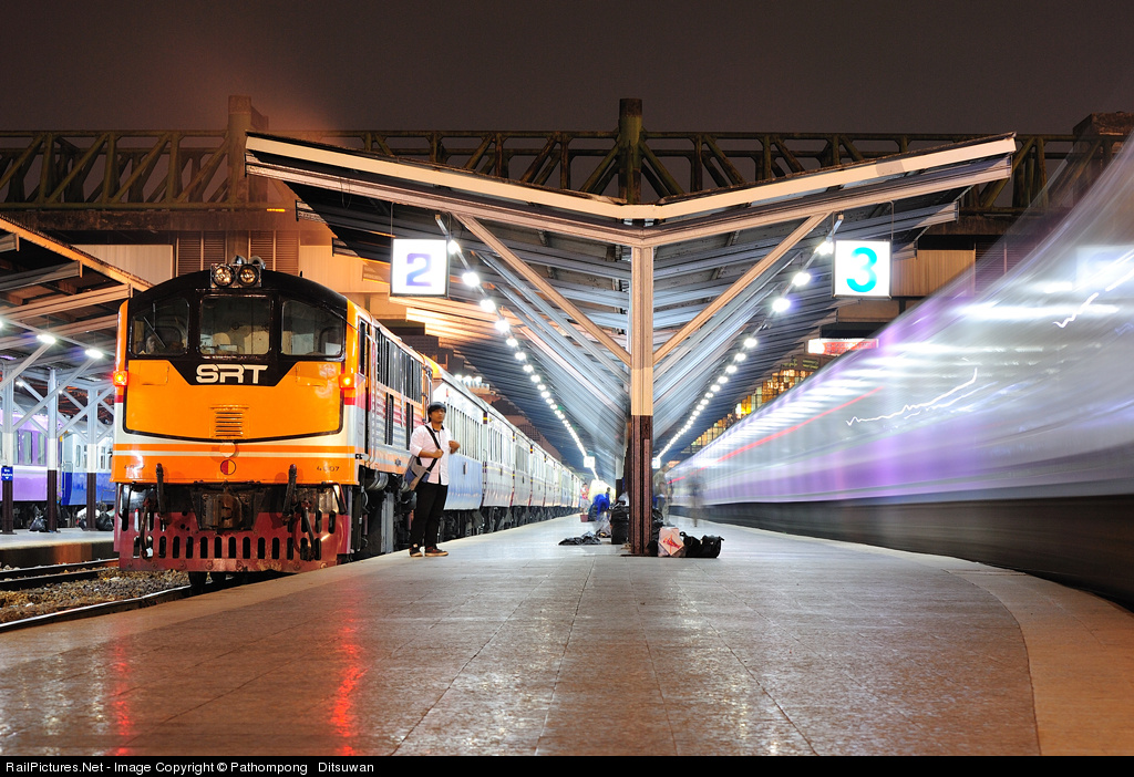 | Platform No. 2 GE UM12C No. 4007 shuffle train set in Bangkok Yard & Platform No. 3 The Special Express No. 13 from Bangkok to Chiang Mai depart from Bangkok Station. |