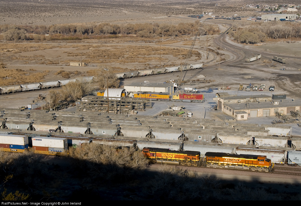 The major custom between Cajon and Barstow is Cemex's Victorville plant. The plant has an in-plant railroad, the Mojave Northern, which shuttles material from the mine back to the plant. In this photo, you can see the Mojave Northern's small yard and the line leading to the mine about 15 miles to the east. Of course, the most notable item in the frame is SWPC 411 painted for the plant's pervious owner. SWPC 411 is one of only 35 SDP35 ever produced and the only one remaining in regular service. Notice how the carbody extends over the rear porch, where a steam generator for passenger service was located.