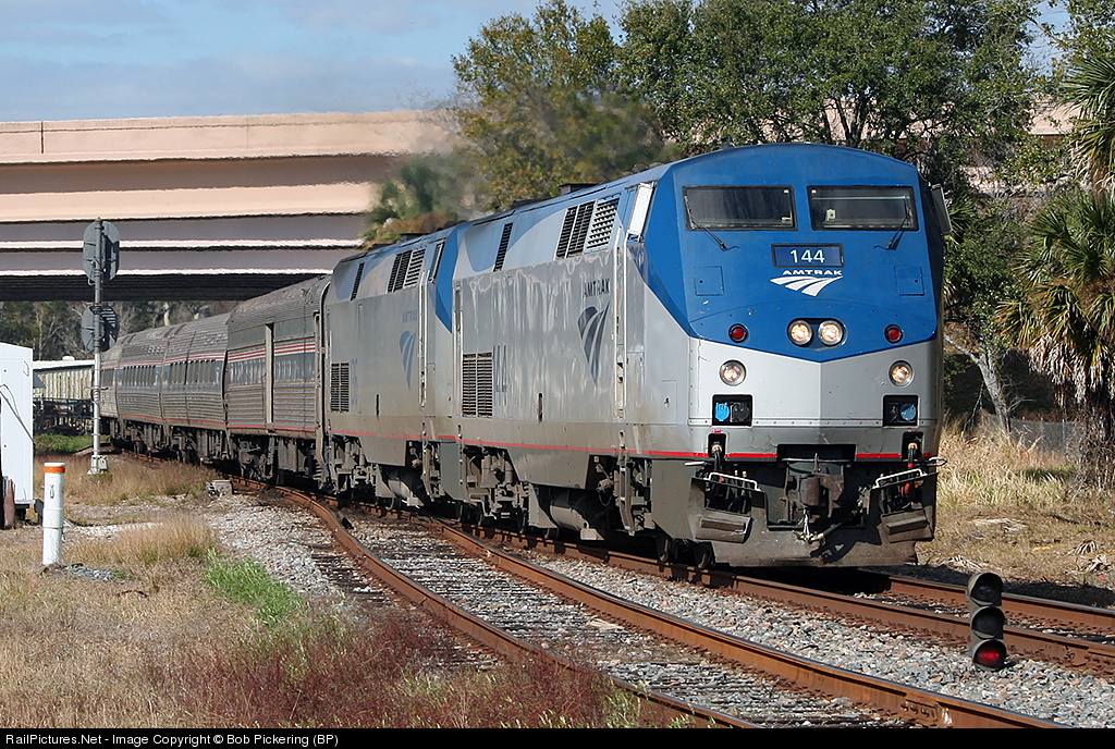 | Amtrak's annual Safety Patrol Special bound for West Palm Beach snakes into Rand Yard. The track layout here has been converted to double track in 2013 to accommodate Sunrail |