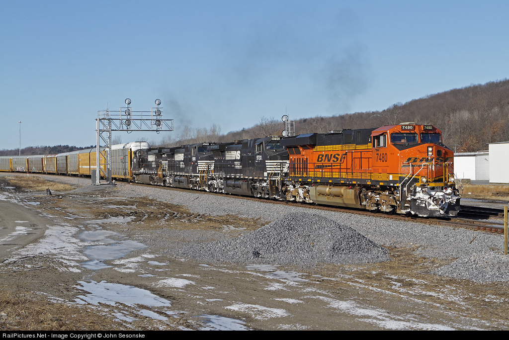 Chicago to Ayer, MA autos and intermodal train running as MOAY from CP's Mohawk Yard in Schenectady, NY to Ayer, MA rolls thru CPF-468 and is about to enter the Pan Am Southern Freight Main, ST District 3. Although their is little snow in Mechanicville the train shows the effects of snow encounters in Ohio and the Buffalo area.