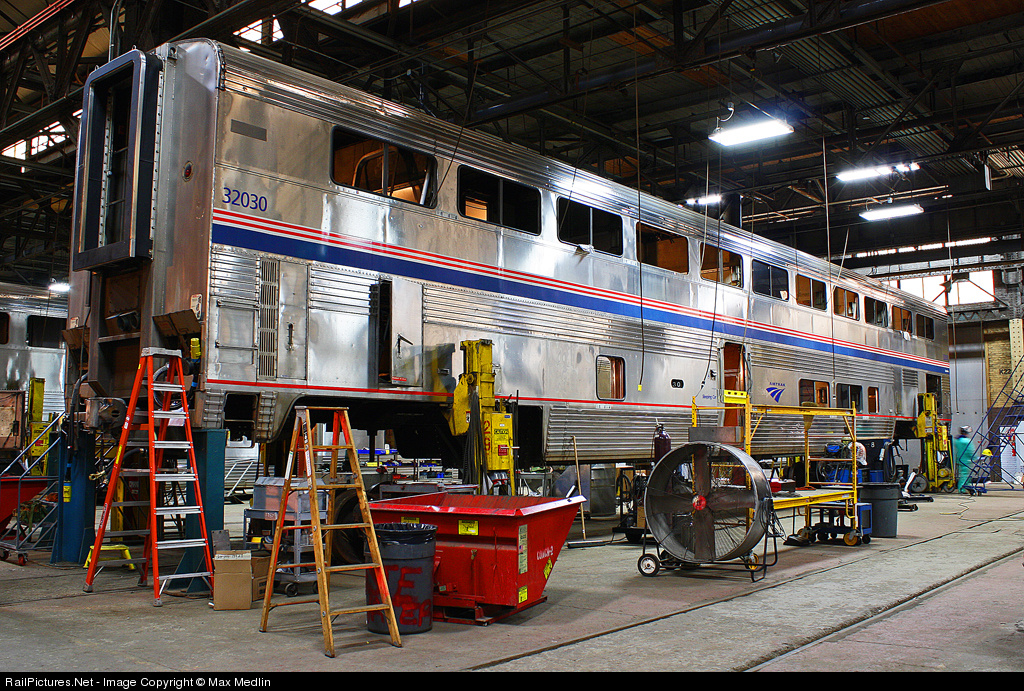 | Superliner car being completely rebuilt by the superb forces at Beech Grove. A rare look inside the fortress of Amtraks #1 maintenance facility. Taken with permission, supervision, and all PPE. |