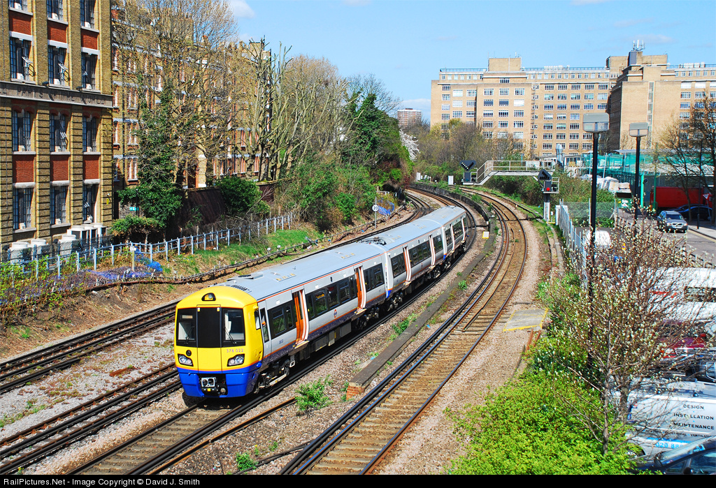 | A London Overground service, bound for Clapham Junction, slows for the station stop at Kensington Olympia as it journies through the heart of London. |