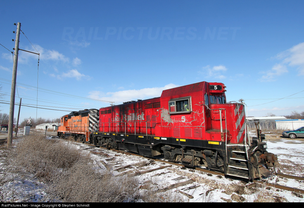 | Illinois Railway 5 and Great Western Railway 5625 run light east through Ladd, Illinois, after taking a load of hoppers to the BNSF Mendota Subdivision at Zearing. The power is now returning to La Salle. |