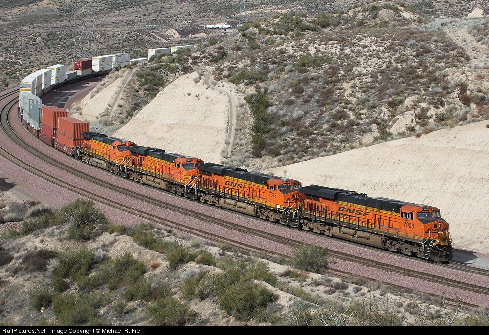 RailPictures.Net Photo: BNSF 7908 Burlington Northern Santa Fe GE ES44DC at Cajon Summit, California by Michael R. Frei