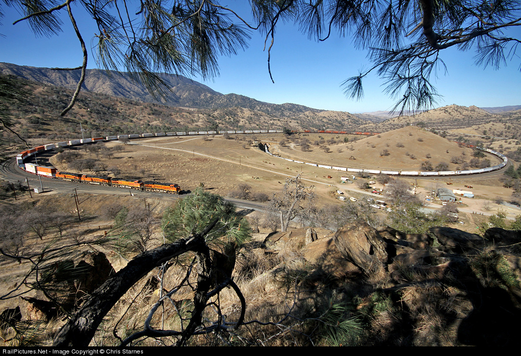 A southbound BNSF Z train works around the famous Tehachapi Loop on a beautiful January morning.