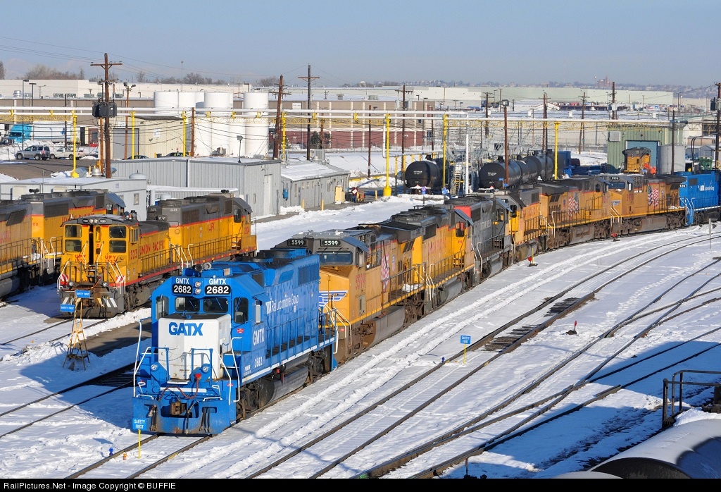 GATX 2682 (GP38-2) sits with a variety of Union Pacific power in the North Yard on an early, cold February morning.