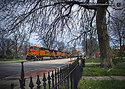 BNSF 6244 leads this High Priority manifest down Atwood Street in Longmont, CO.