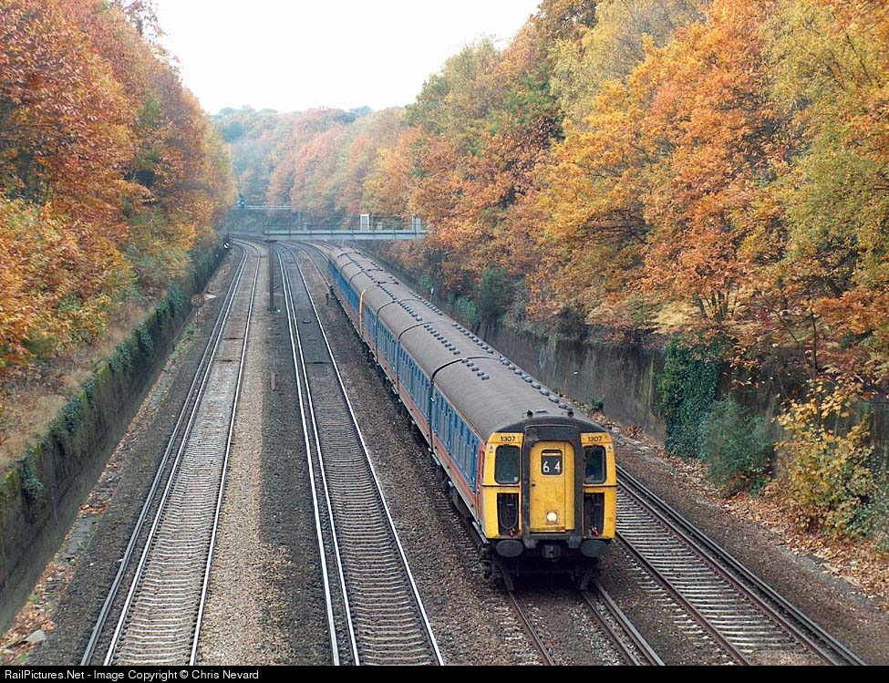 | 1307, Waterloo bound train. View from haynes Bridge, Weybridge 10th Nov 2003. HP Photosmart 945. 1/350 @ f3.1, 50mm, 400 ASA |