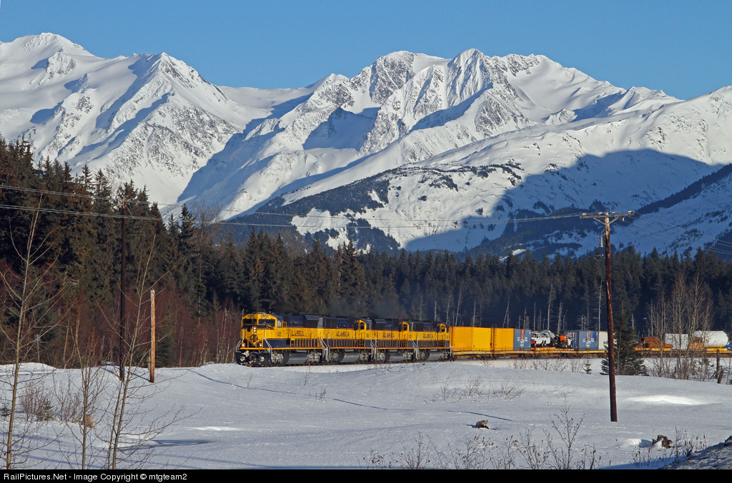 A northbound freight bound for Anchorage rolls through Girdwood and the Chugach Mountains. The winter time provides great photo opportunities for those willing to get out and explore.