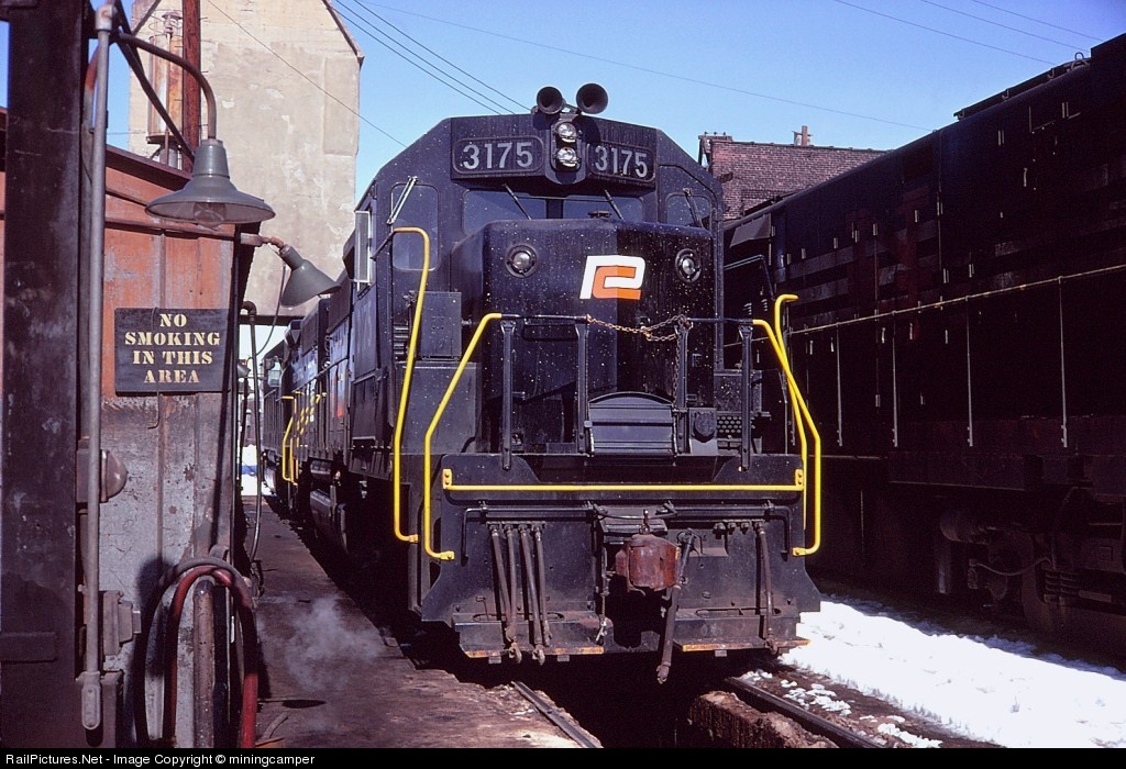 Who says Penn Central wasn't colorful? Actually, this herald variation was quite rare. A post elsewhere states that only 17 units got this. Reportedly, the New York Central "green team" felt that red suggested Pennsylvania Railroad dominance. Oh, by the way, watch your step here!