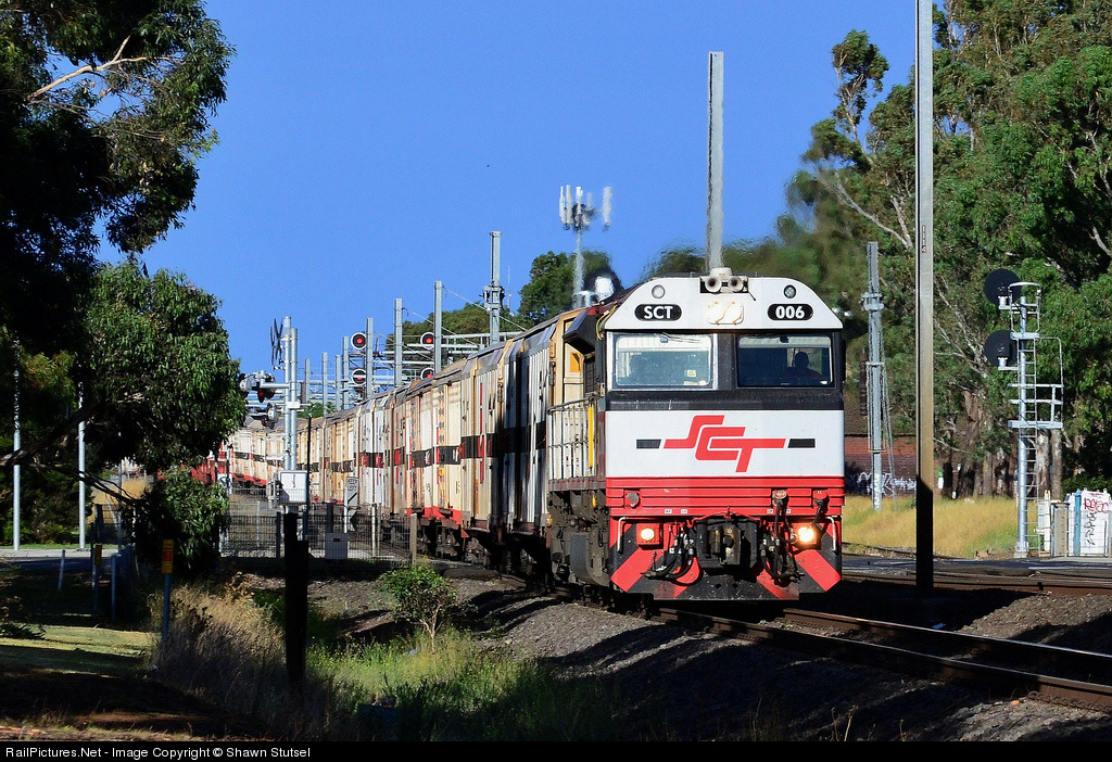 | A most unusual sight, Sole SCT's SCT006 Leads a very Short 1MP9, Superfreighter through Werribee, Melbourne... |