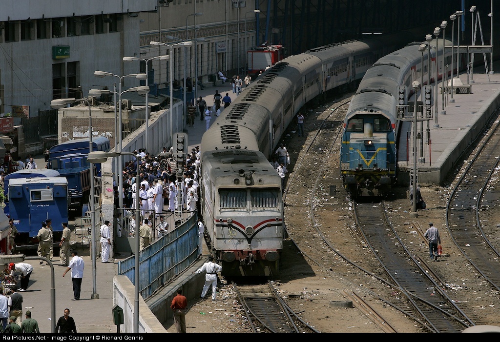 This scene is taken from the roof of the main power box in Cairo station ! The first two coaches of the train are for prisoners and the prisoners have just arrived in the blue trucks parked outside the station wall. as you can imagine security on the station was very tight ! there was just as many police at the other end of the station platform to stop people getting close to the prisoners. The condition on the train for the prisoners is basic !!