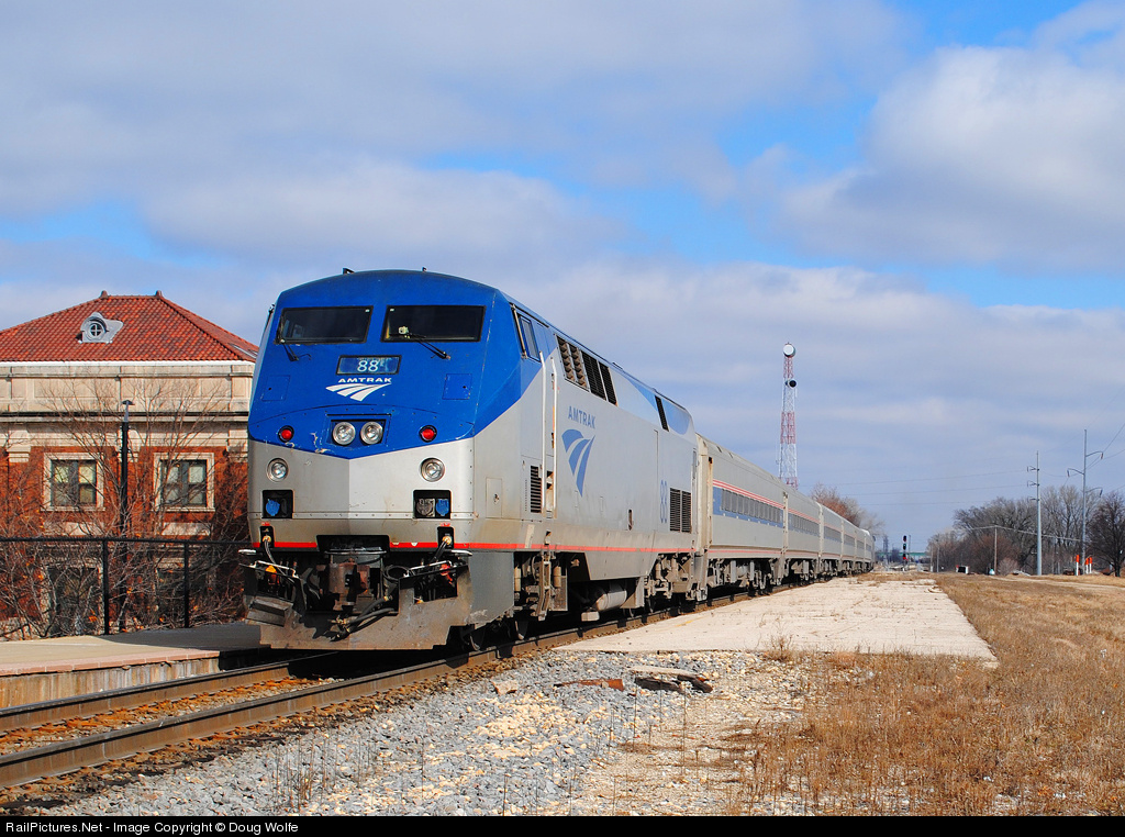 RailPictures.Net Photo: AMTK 88 Amtrak GE P42DC at Champaign, Illinois by Doug Wolfe