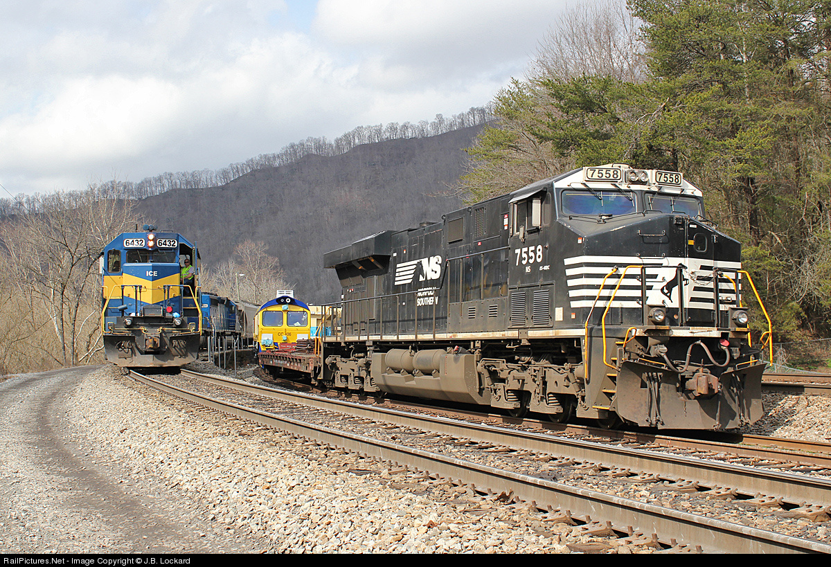 An ICE powered ethanol unit train waits for a signal beside NS 7558 with a consist two new EMD railbus' with SETRAG markings and 7 new SD 70Ace's with SNIM markings bound for Africa.