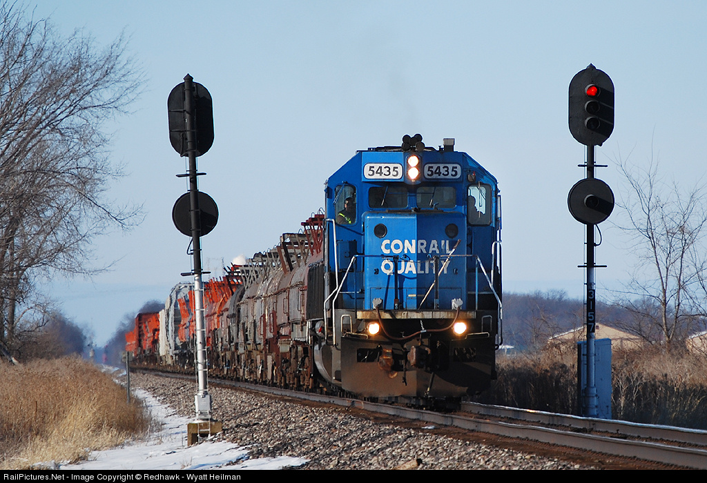 One of the only times I ever managed to catch a former Conrail unit leading in good light was a chilly winter morning in late 2010. Here, a solo ex-Con SD50 leads a lengthy L75 between the NKP signals near Elm Center. Hard to believe Big Blue is all gone now.