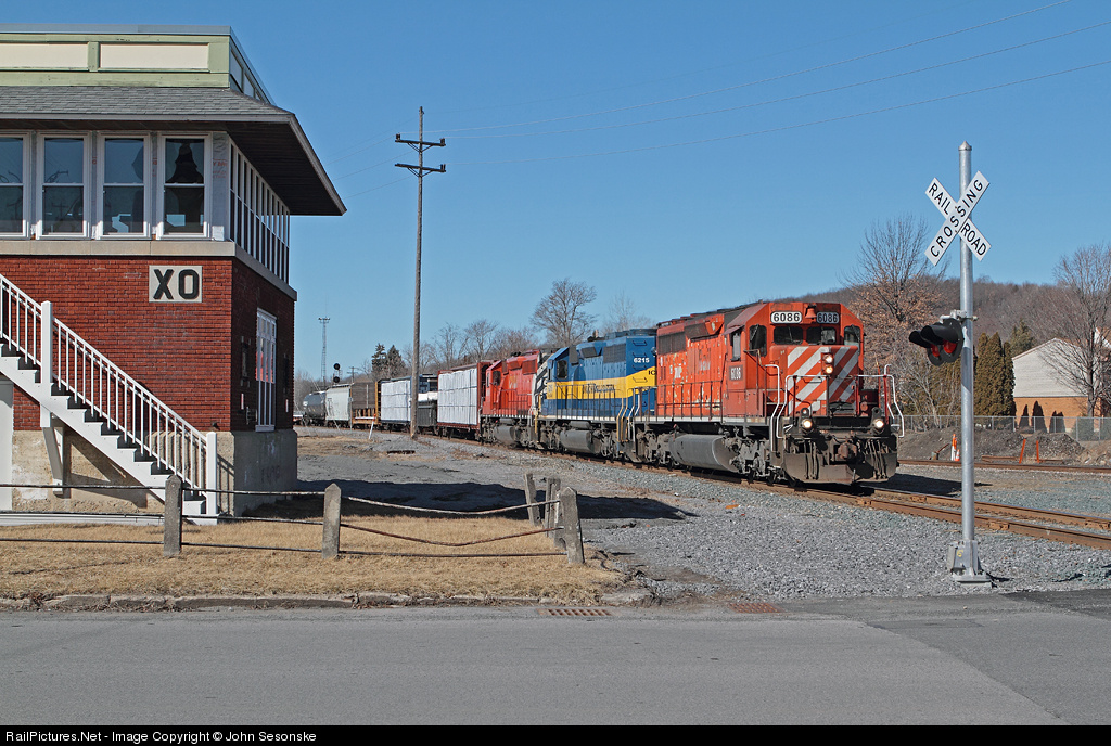 CP 450 rolls by the former D&H XO Tower. Historically this tower controlled the diamond where the B&M Main crossed the D&H Main at the east end of 2 large classification yards operated by each railroad. The City of Mechanicville is in the process of restoring this tower.
